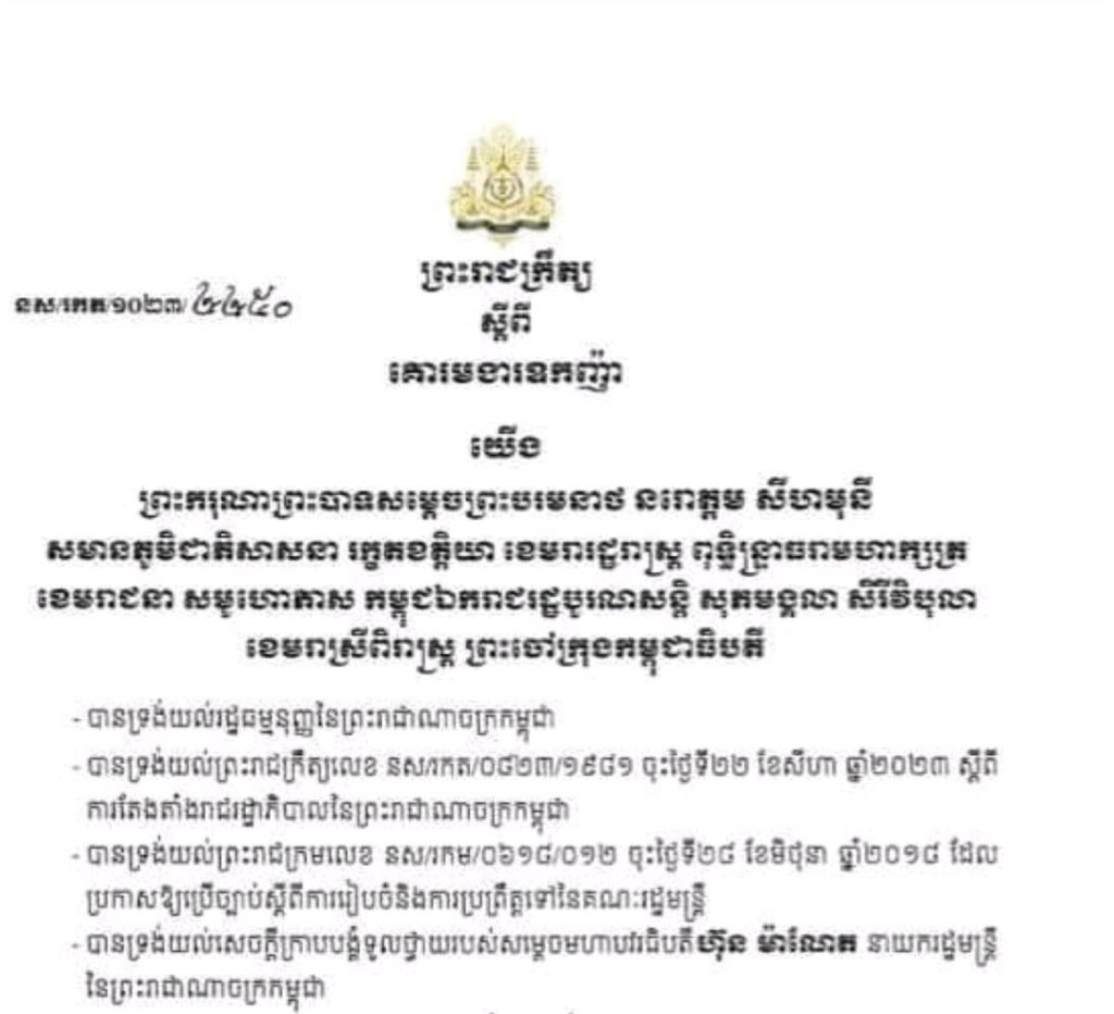 ព្រះរាជក្រឹត្យស្ដីពីគោរមងារឧកញ៉ា ខែតុលា ឆ្នាំ២០២៣។