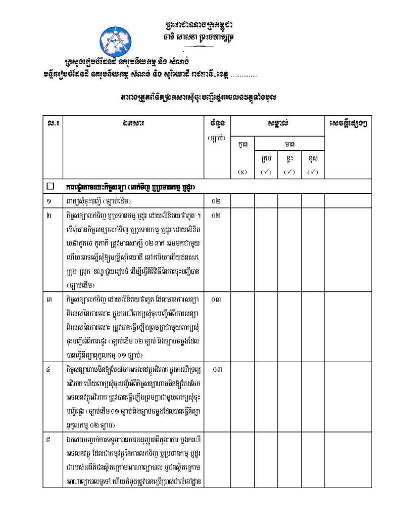 តារាងត្រួតពិនិត្យឯកសារសុំចុះបញ្ជីផ្ទេរអចលនវត្ថុទាំងមូល និងទម្រង់នៃពាក្យសុំចុះបញ្ជីអំពីការផ្ទេរកម្មសិទ្ធិ ។