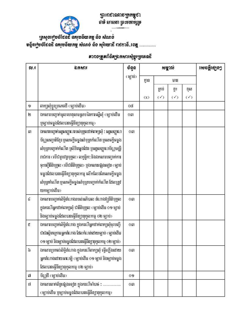 តារាងត្រួតពិនិត្យឯកសារសុំប្ដូរប្រភេទដី ព្រមទាំង (១) ទម្រង់ពាក្យសុំប្ដូរប្រភេទនៃការប្រើប្រាស់ដី និង (២) ពាក្យស្នើសុំពិនិត្យទិន្នន័យក្បាល់ដី