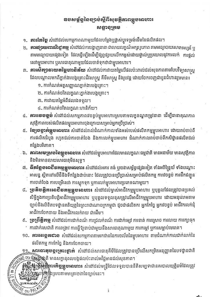 ច្បាប់ស្ដីពីសុវត្តិភាពម្ហូបអាអារ និងឧសម្ព័ន្ធនៃច្បាប់នេះ ។