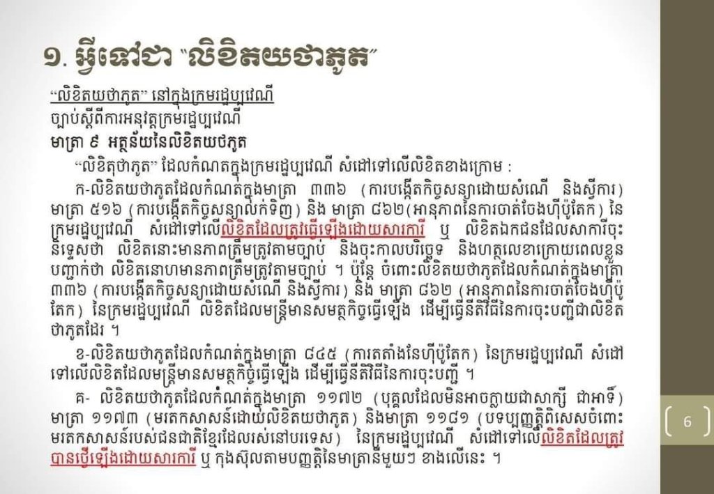 លិខិតយថាភូត “តើអ្វីទៅជាលិខិតយថាភូត ហើយមានទម្រង់បែបណា?