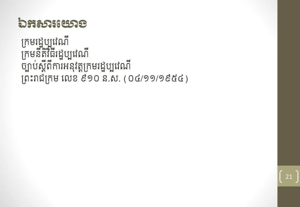 Next: អនុក្រឹត្យស្ដីពីការបង្កើតតំបន់បេតិកភណ្ឌធម្មជាតិនិងការកំណត់ទីតាំងបេតិកភណ្ឌវប្បធម៌ប្រវត្តិសាស្ត្រ នគរភ្នំឈើកាច់បាភ្នំ ។→