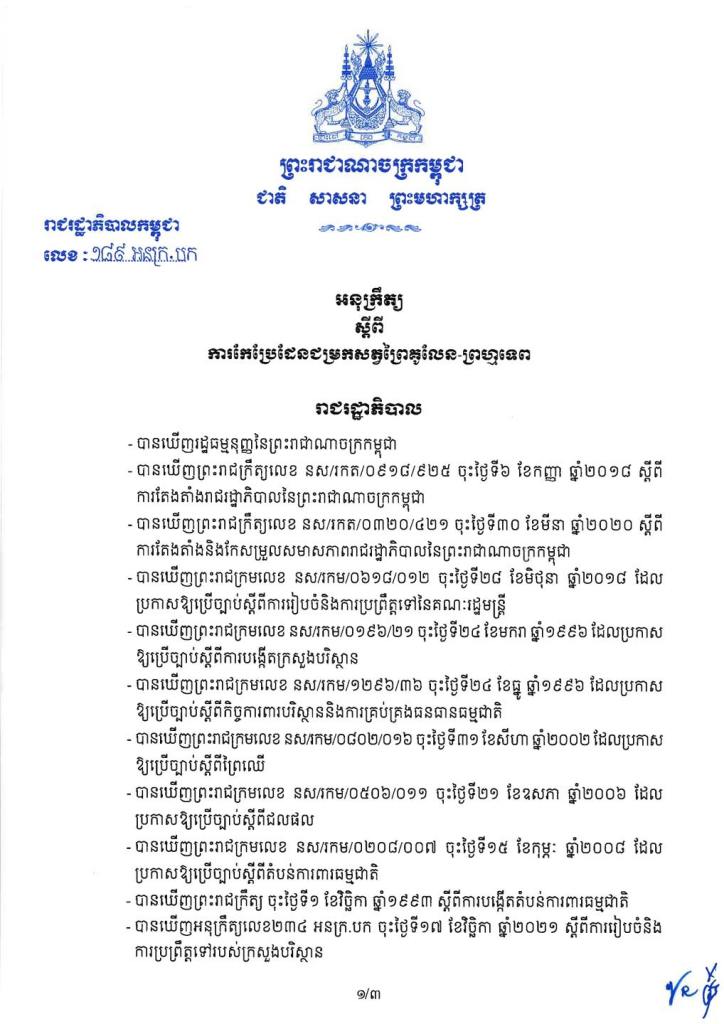 អនុក្រឹត្យស្ដីពីការកែប្រែដែនជម្រកសត្វព្រៃគូលែន ព្រហ្មទេព។