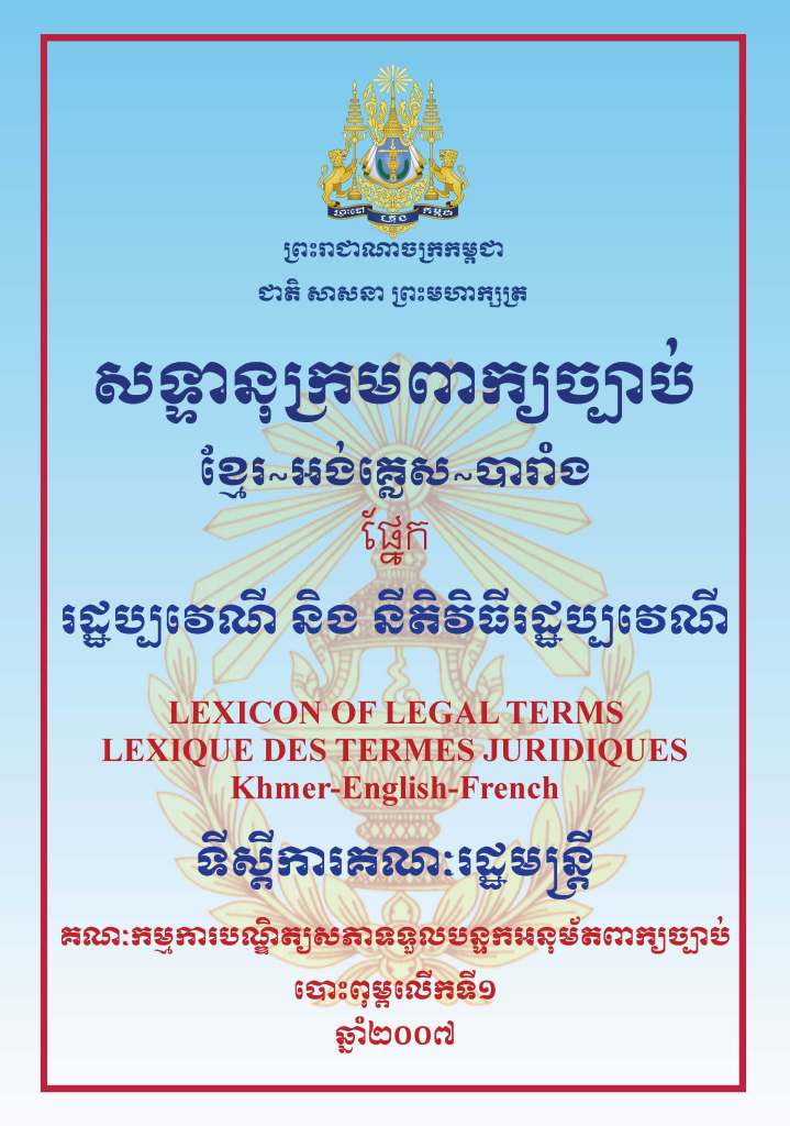 សន្ទានុក្រមពាក្យច្បាប់ខ្មែរ បារាំង អង់គ្លេស ផ្នែករដ្ឋប្បវេណី និងនីតិវិធីរដ្ឋប្បវេណី។