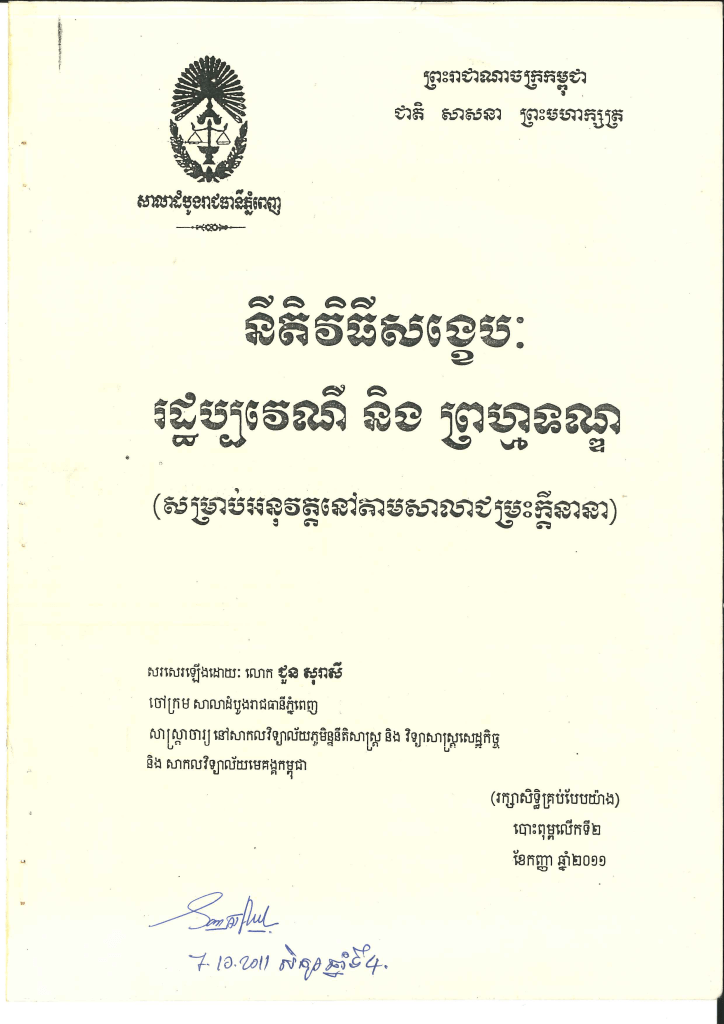 នីតិវិធីសង្ខេប៖ រដ្ឋប្បវេណី និង ព្រហ្មទណ្ឌ (សម្រាប់អនុវត្តនៅតាមសាលាជម្រះក្ដីនានា)