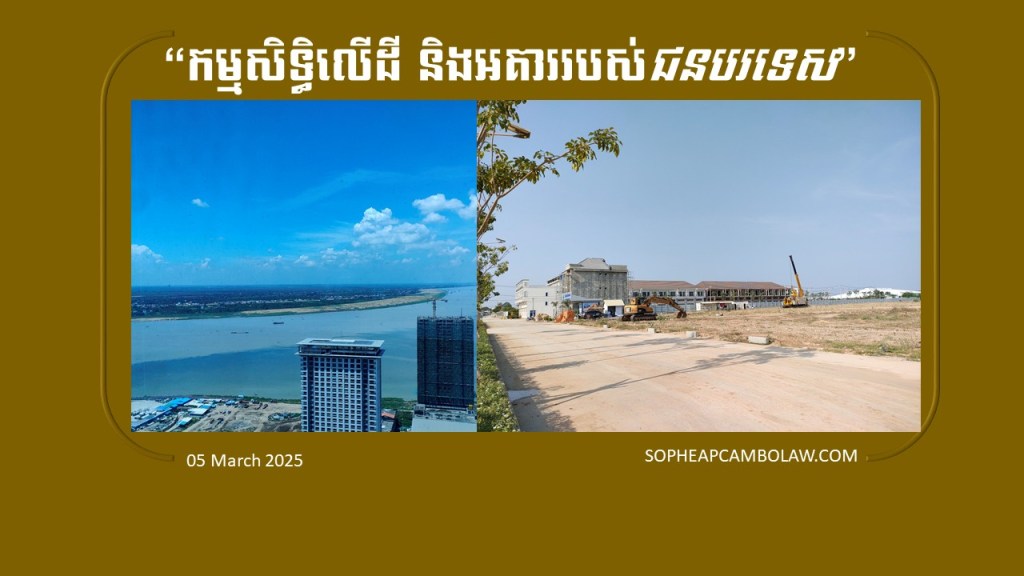 ស្របតាមច្បាប់ស្ដីពីការផ្ដល់សិទ្ធិកម្មសិទ្ធិលើចំណែកឯកជននៃអគារសហកម្មសិទ្ធិដល់ជនបរទេស ឆ្នាំ២០១០ និងបទប្បញ្ញត្តិនៃការអនុវត្តគឺ ជនបរទេសអាចមានសិទ្ធិកម្មសិទ្ធិលើចំណែកឯកជននៃអគារសហកម្មសិទ្ធិមួយកន្លែងមិនលើសពីរ ៧០% (ចិតសិបភាគរយ) នៃទំហំផ្ទៃក្រឡានៃចំណែកឯកជនទាំងអស់នៃអគារសហកម្មសិទ្ធិ និងគិតចាប់ពីជាន់ទី ១ (មួយ) ឡើងទៅ ដោយមិនអនុញ្ញាតឡើយចំពោះជាន់ផ្ទាល់ដី និងជាន់ក្រោមដីនៃអគារសហកម្មសិទ្ធិឡើយ។
