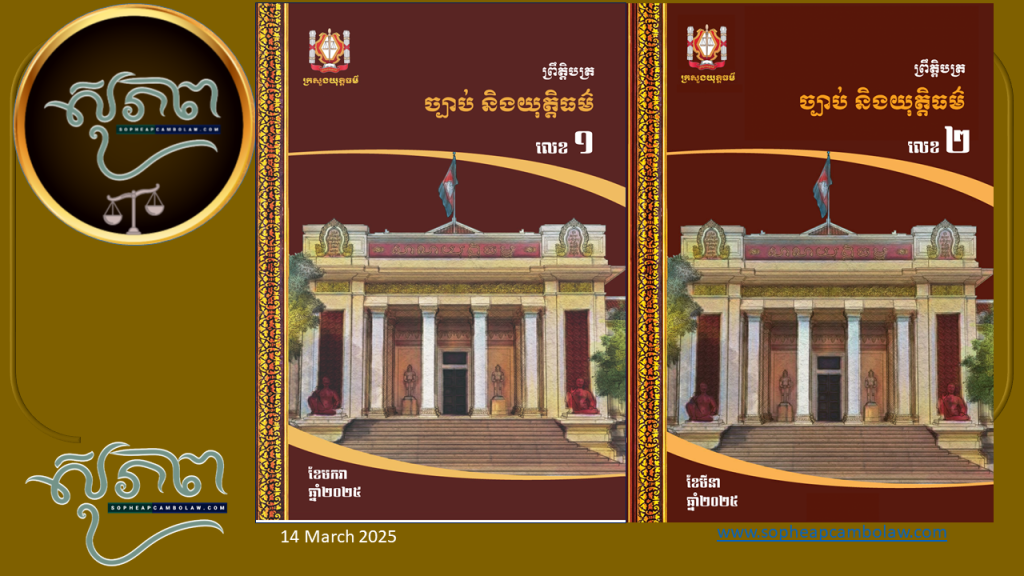 នាពេលថ្មីៗនេះ ក្រសួងយុត្តិធម៌បានធ្វើការចេញផ្សាយព្រឹត្តិបត្រច្បាប់ និងយុត្តិធម៌ចំនួនពីរលេខដែលមានខ្លឹមសារទាំងស្រុងដូចខាងក្រោម៖