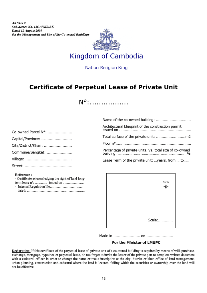 A Perpetual Lease is a long-term lease agreement that grants a lessee rights over a property for an indefinite period, subject to renewal conditions. This is commonly used in Cambodia when foreign individuals or entities lease property for long-term use.