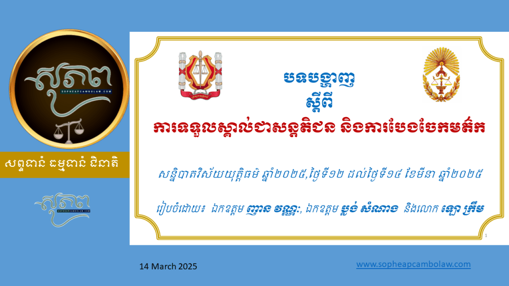 បទបង្ហាញស្ដីពី ការទទួលស្គាល់ជាសន្តតិជន និងការចែងចែកមត៌ក។