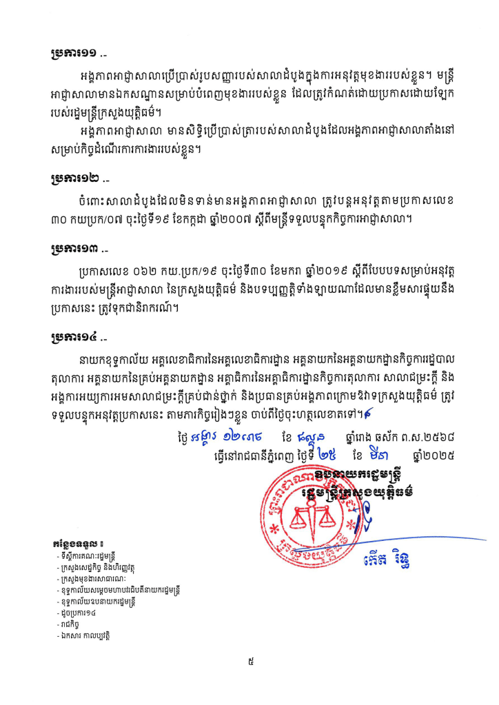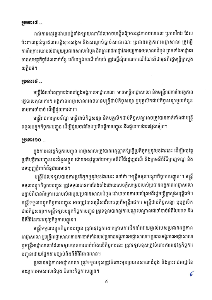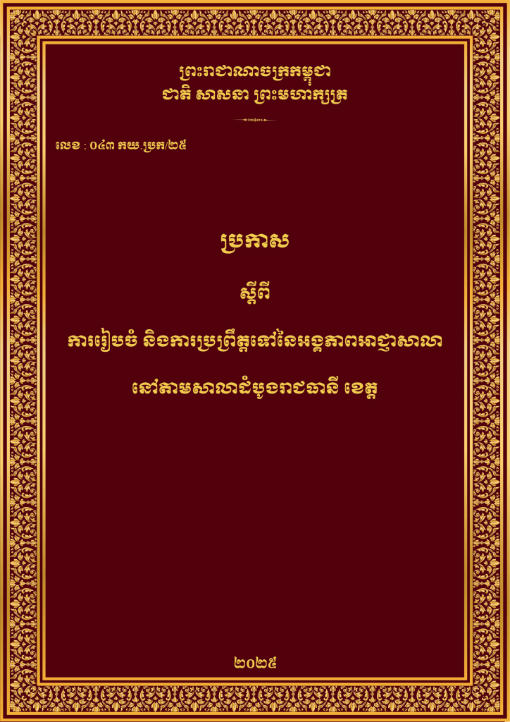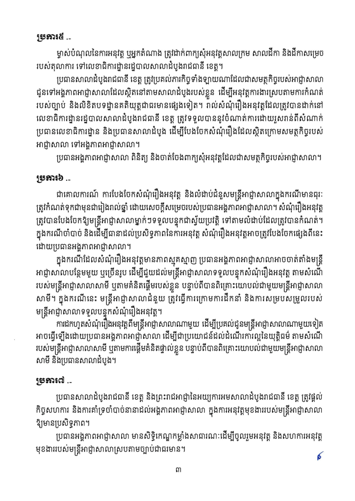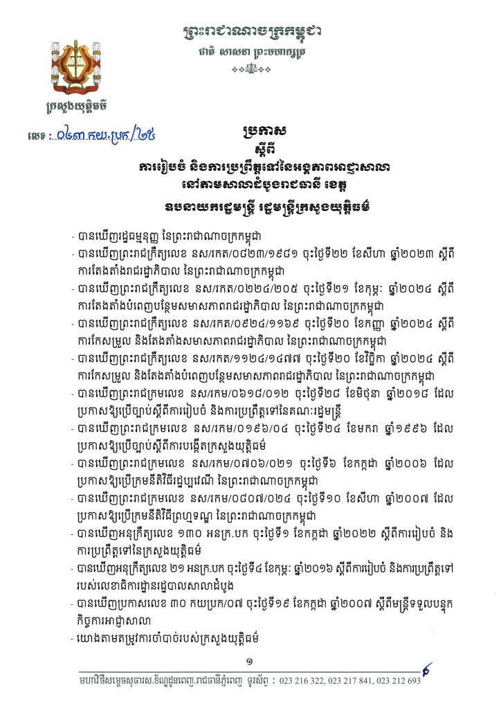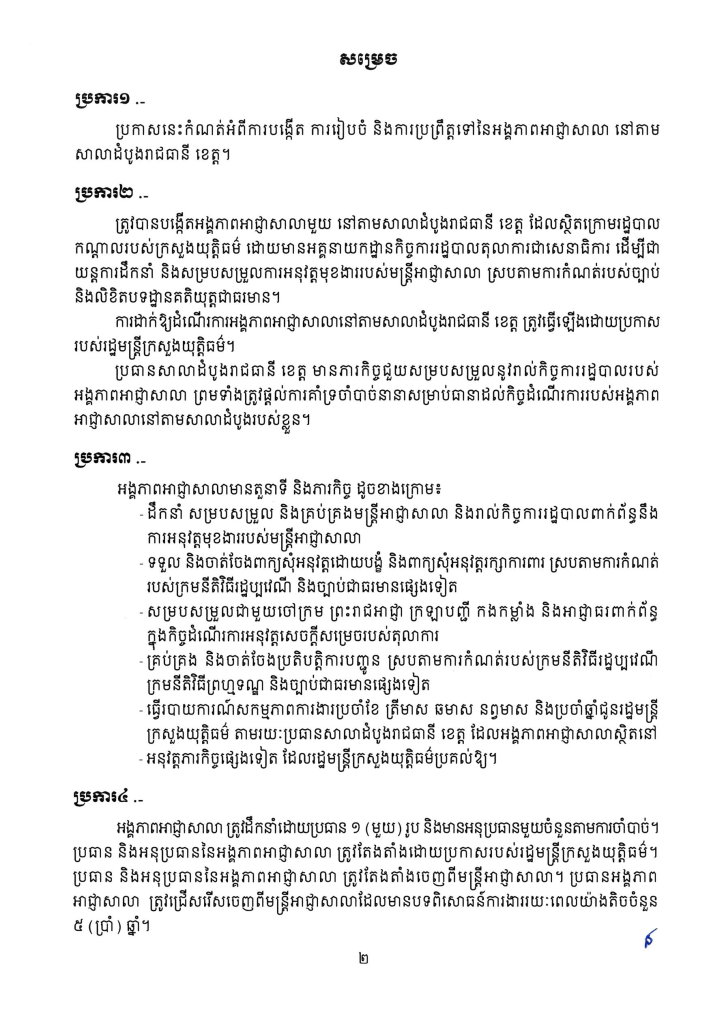 ប្រកាសស្ដីពី ការរៀបចំ និងការប្រព្រឹត្តទៅនៃអង្គភាពអាជ្ញាសាលានៅតាមសាលាដំបូងរាជធានី ខេត្ត។