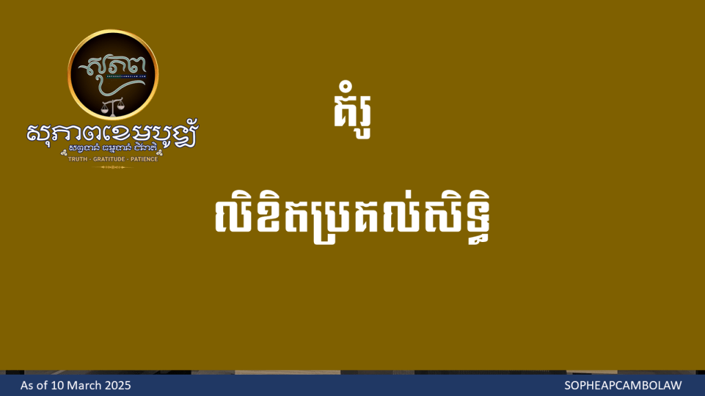 ធ្វើនៅ [……………………] ថ្ងៃទី [……………………] ខែ [……………………] ឆ្នាំ [……………………]។