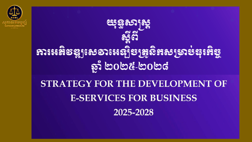 យុទ្ធសាស្ត្រស្ដីពីការអភិវឌ្ឍសេវាអេឡិចត្រូនិកសម្រាប់ធុរកិច្ចឆ្នាំ២០២៥-២០២៨ Strategy for the development of E-services for business 2025-2028.