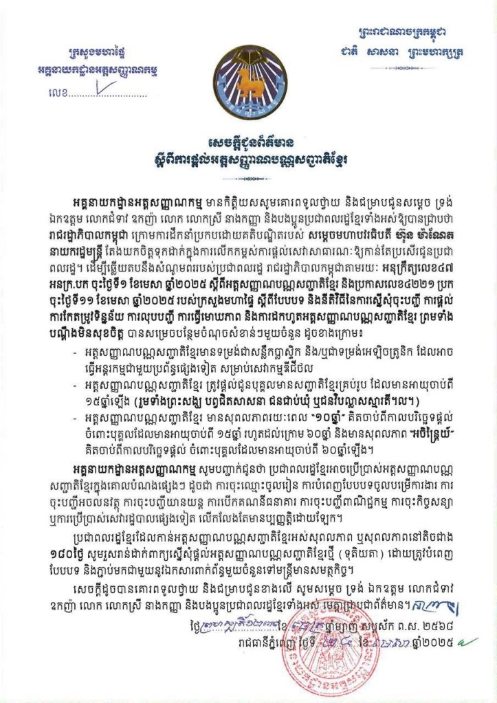 ចាប់ពីពេលនេះតទៅព្រះសង្ឃក៏អាចមានអត្តសញ្ញាណប័ណដែរ។