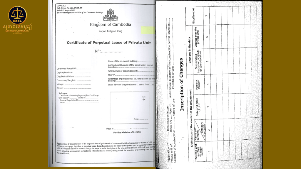 For a perpetual lease to be enforceable against third parties, it must be registered with the Cadastral Office. This registration is only accepted if the lease is certified by a notary public or the local Sangkat where the property is located. Once registered, the lease remains enforceable even if the property changes ownership.