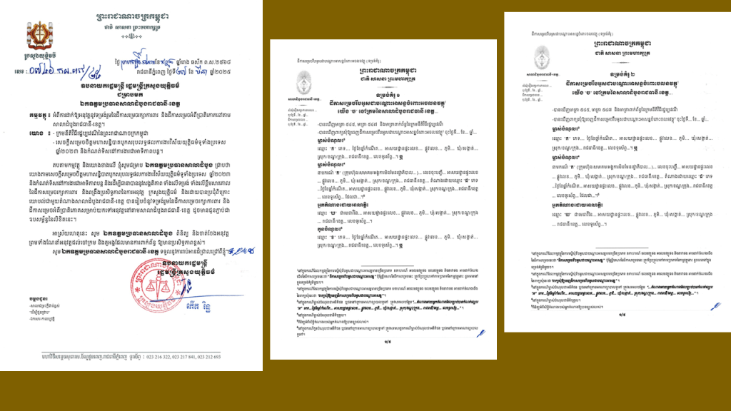 - លិខិតលេខ០៧៤៦ កយ.អរវ/២៥ ស្ដីអំពីការដាក់ឱ្យអនុវត្តនូវទម្រង់រួមនៃដីកាសម្រេចរក្សាការពារ និងដីកាសម្រេចអំពីប្រាតិភោគនៅតាម សាលាដំបូងរាជធានី-ខេត្ត ចេញយដោយ ក្រសួងយុត្តិធម៌ ចុះថ្ងៃទី៤៧ ខែ ១នា ឆ្នាំ២០២៥។ ↩︎