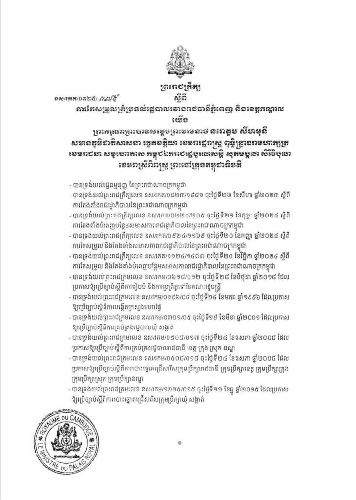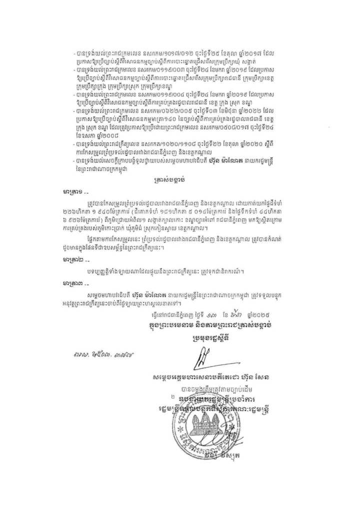 ត្រូវបានកែសម្រួលព្រំប្រទល់រដ្ឋបាលរវាងរាជធានីភ្នំពេញ និងខេត្តកណ្តាល ដោយកាត់យកផ្ទៃដីទំហំ ២២៦ហិកតា ១ ៩៤០ម៉ែត្រការ៉េ (ដីគោកទំហំ ១៨១ហិកតា ៥ ០១៤ម៉ែត្រការ៉េ និងផ្ទៃទឹកទំហំ ៤៤ហិកតា ៦ ៩២៦ម៉ែត្រការ៉េ) ពីភូមិជ្រោយអំពិល១ សង្កាត់ក្បាលកោះ ខណ្ឌច្បារអំពៅ រាជធានីភ្នំពេញ មកឱ្យស្ថិតក្រោម ការគ្រប់គ្រងរបស់ភូមិកោះប្រាក់ ឃុំភូមិធំ ស្រុកកៀនស្វាយ ខេត្តកណ្តាល។
