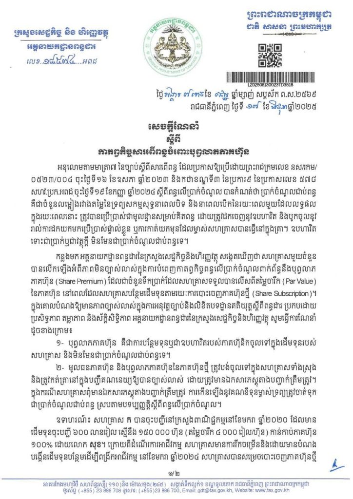 - ការអនុវត្តពន្ធលើចំណេញមូលធន