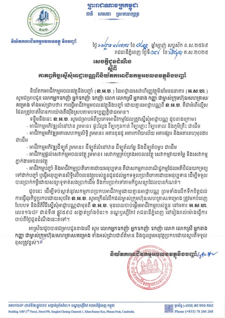 កាតព្វកិច្ចស្នើសុំអាជ្ញាបណ្ណពីនិយ័តករអាជីវកម្មអចលនវត្ថុ និងបញ្ចាំ។