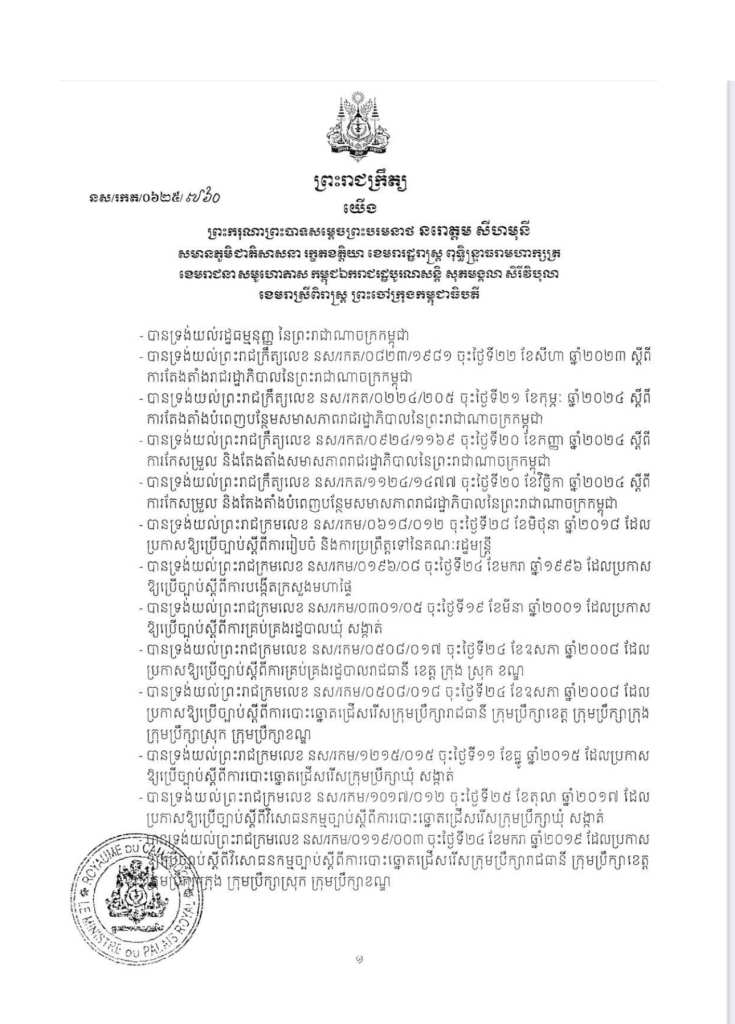 យោងតាមព្រះរាជក្រឹត្យលេខ នស/រកត/០៦២៥/៧៦០ ចុះថ្ងៃទី១២ ខែមិថុនា ឆ្នាំ២០២៥ មានខ្លឹមសារដូចខាងក្រោម៖