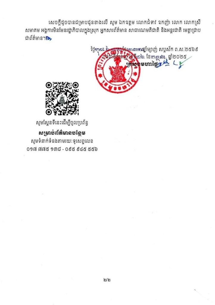 ←Previous: ក្រសួងមហាផ្ទៃ ចេញសេចក្តីប្រកាសព័ត៌មាន ស្តីពីដាក់ឱ្យដំណើរការប្រព័ន្ធចុះបញ្ជីសមាគម និងអង្គការមិនមែនរដ្ឋាភិបាលក្នុងស្រុក តាមប្រព័ន្ធឌីជីថល។