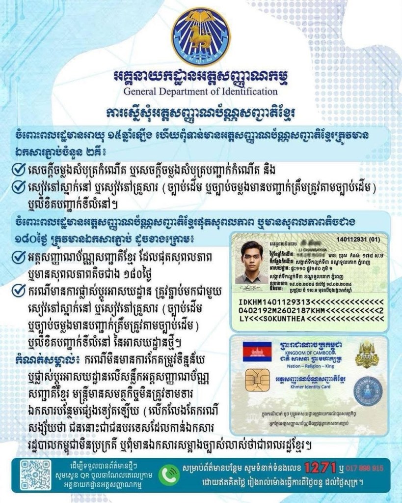 ការស្នើសុំធ្វើអត្ដសញ្ញាណប័ណ្ណសម្រាប់អ្នកទើបគ្រប់អាយុនិងសម្រាប់អត្ដសញ្ញាណប័ណ្ណដែលផុតសុពលភាពឬសុពលភាពតិចជាង១៨០ថ្ងៃ។