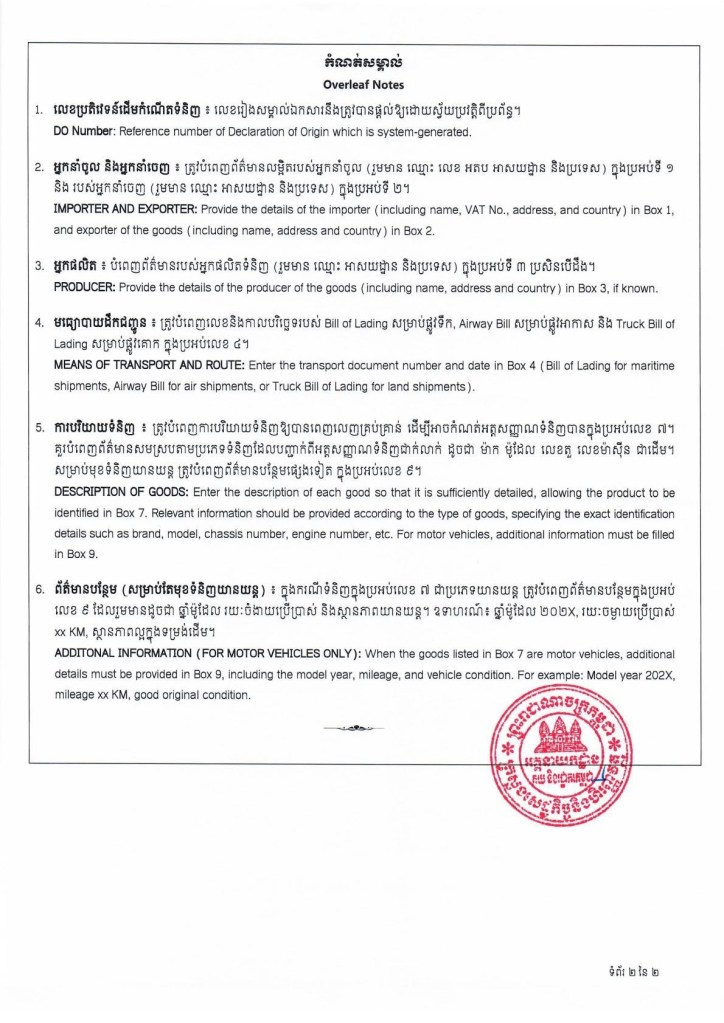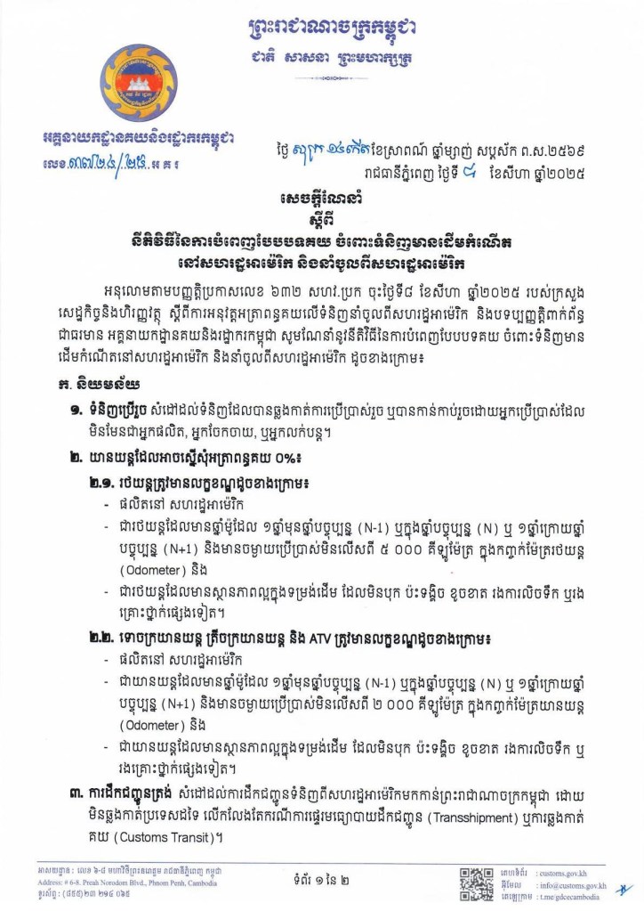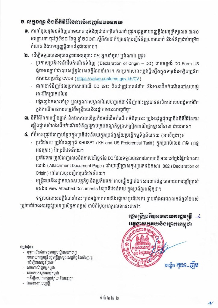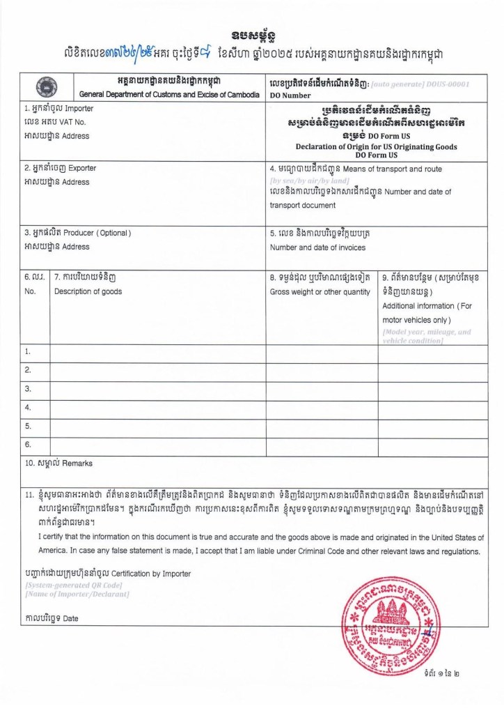 នីតិវិធីនៃការបំពេញបែបបទគយ ចំពោះទំនិញមានដើមកំណើតនៅសហរដ្ឋអាម៉េរិក និងនាំចូលពីសហរដ្ឋអាម៉េរិក។