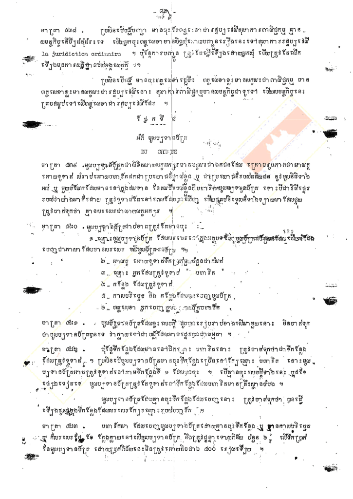 - ក្រមរដ្ឋប្បវេណីភាគ ១ មូលដ្ឋាននៃបញ្ញត្តិទូទៅ និងសិទ្ធិប្រត្យក្ស