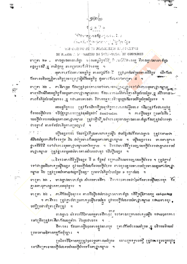 - វិសោធនកម្មនូវបទប្បញ្ញត្តិមួយចំនួននៃក្រមរដ្ឋប្បវេណី ។