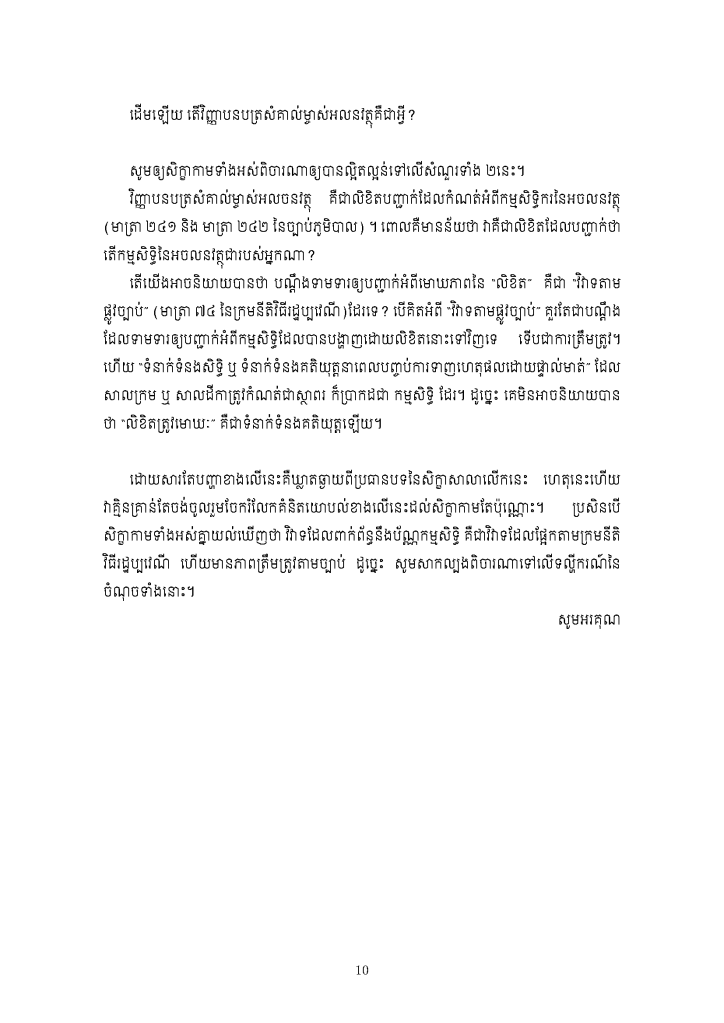 អំពីនីតិវិធីចុះបញ្ជីអចលនវត្ថុ។