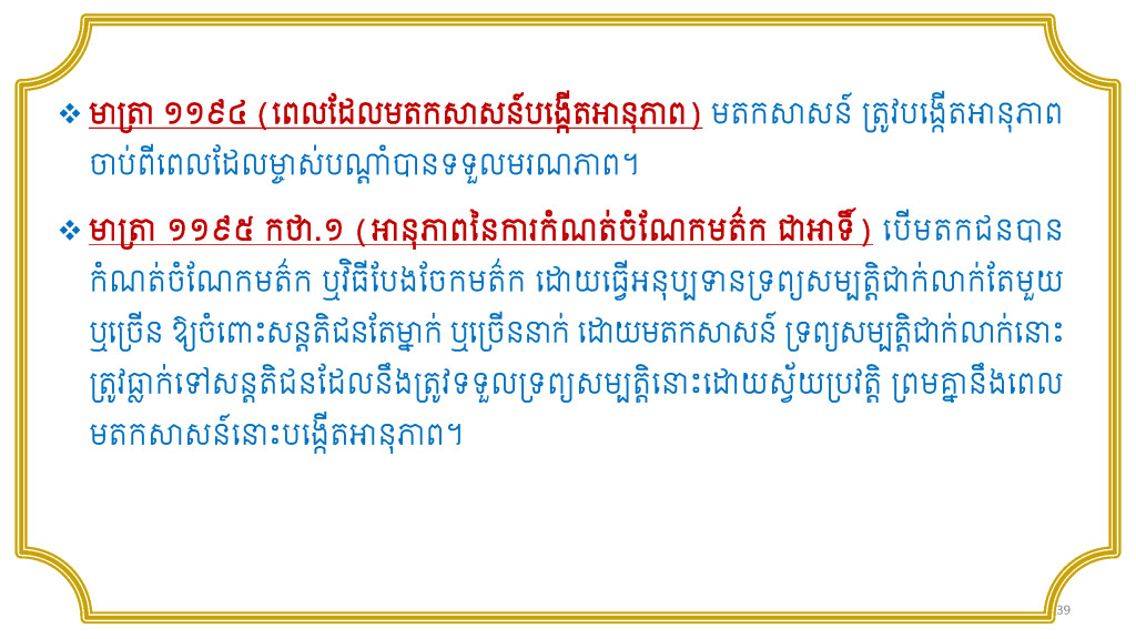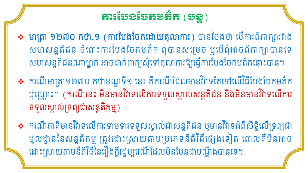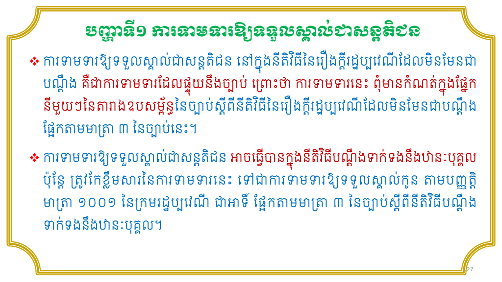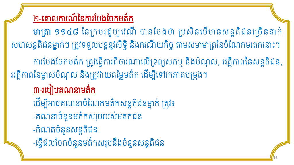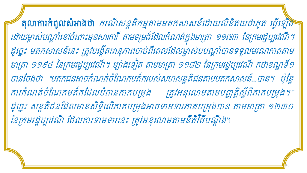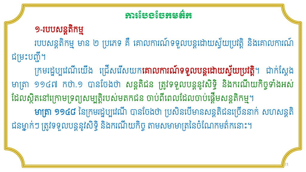 ការទទួលស្គាល់ជាសន្តតិជន និងការបែងចែកមត៌ក ។