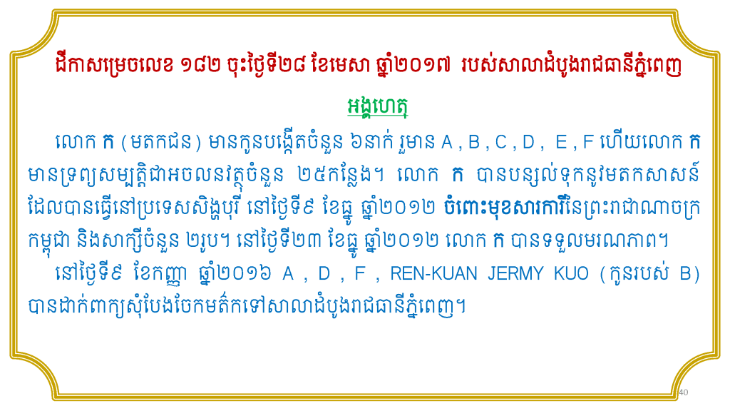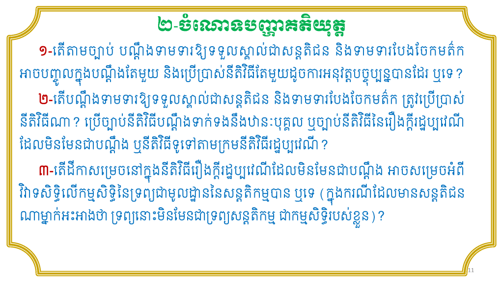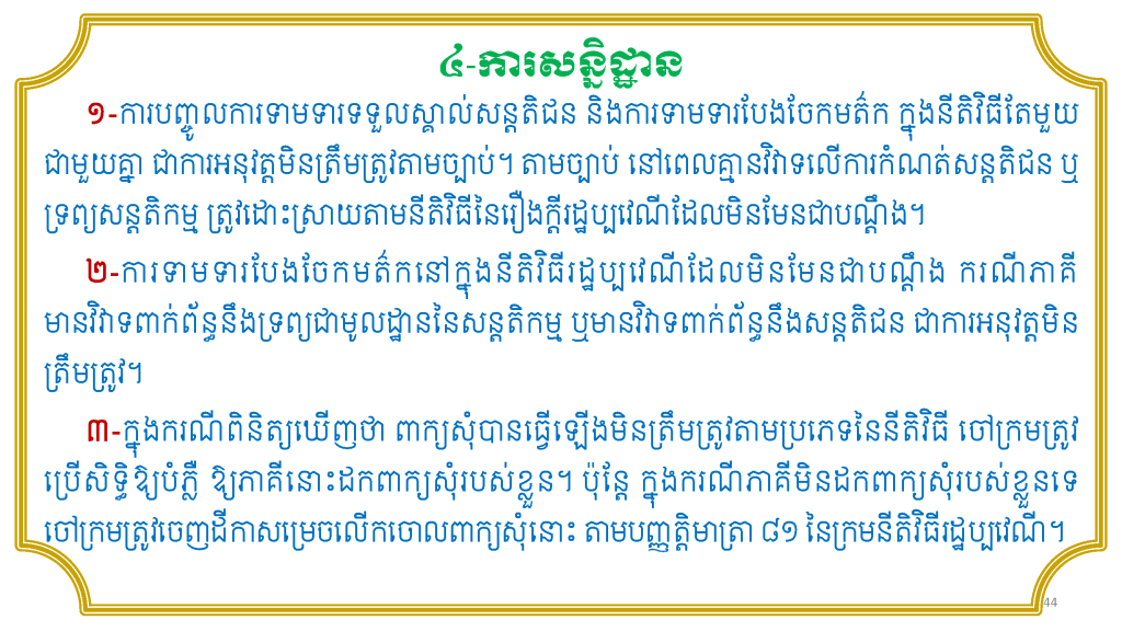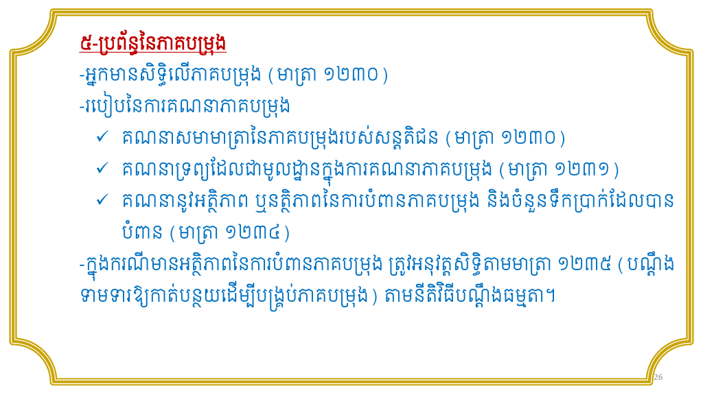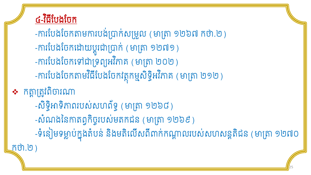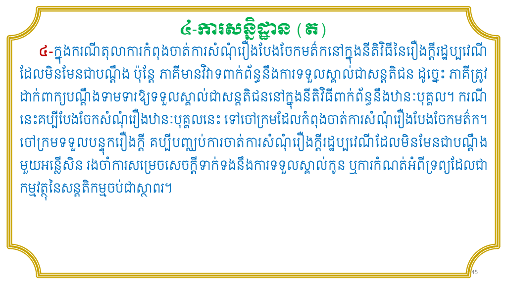 ការទទួលស្គាល់ជាសន្តតិជន និងការបែងចែកមត៌ក ។