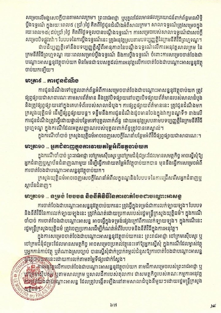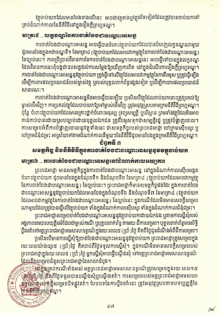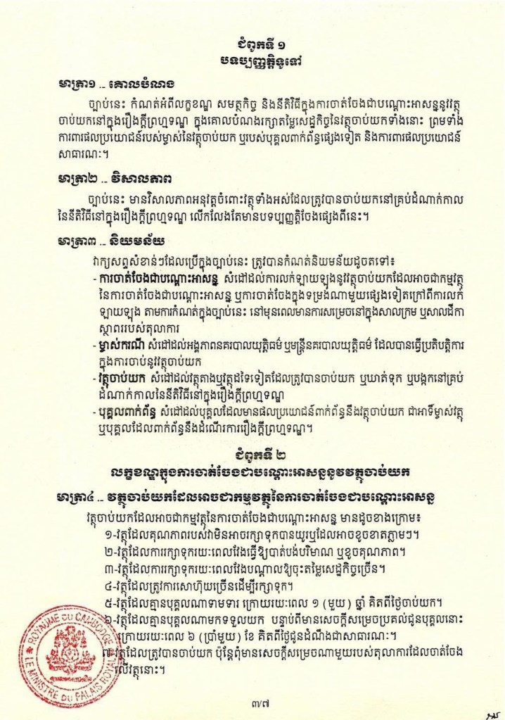 ច្បាប់ស្ដីពីការចាត់ចែងជាបណ្ដោះអាសន្ននូវអចលនវត្ថុ។