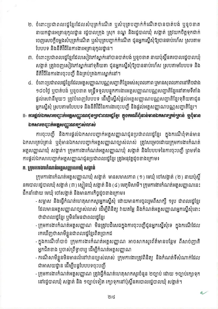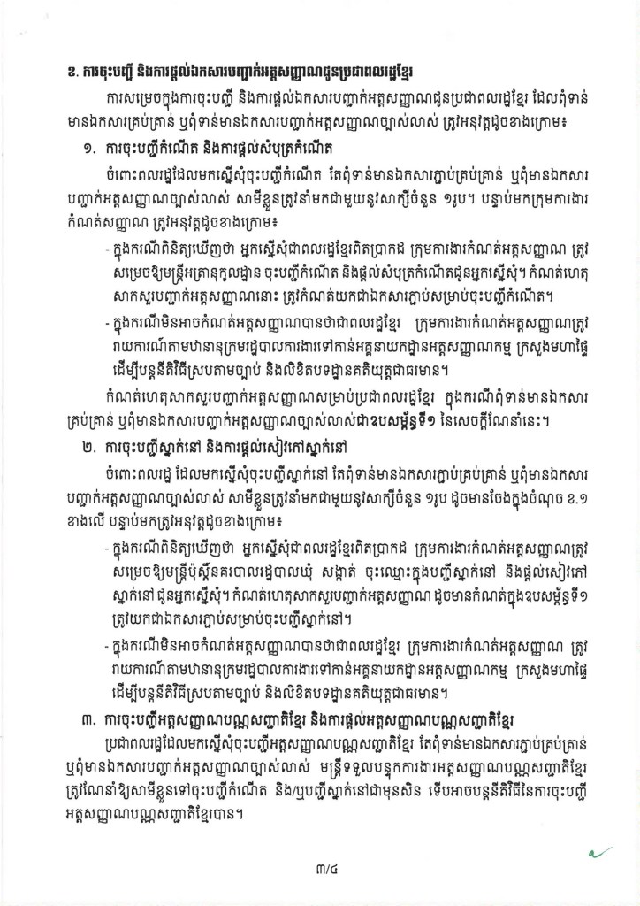 សេចក្ដីណែនាំស្ដីពីការជំរុញផ្ដល់ឯកសារបញ្ជាក់អត្តសញ្ញាណជូនប្រជាពលរដ្ឋខ្មែរដែលទើបវិលត្រលប់ពីប្រទេសថៃនិងប្រជាពលរដ្ឋខ្មែរដែលពុំទាន់មានឯកសារគ្រប់គ្រាន់។