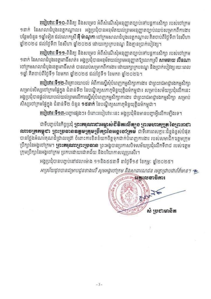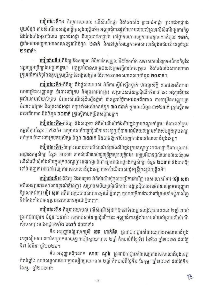 សេចក្ដីប្រកាសព័ត៌មាននៃសម័យប្រជុំឧត្ដមក្រុមប្រឹក្សានៃអង្គចៅក្រមលើកទី៣៨។